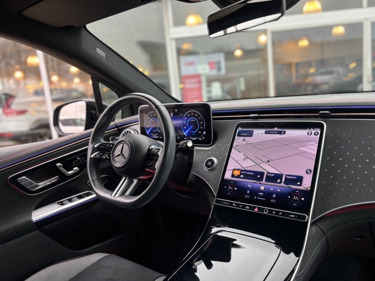 Bliv godt kørende i denne Mercedes EQE300 SUV AMG Line med et stort udstyrsniveau.